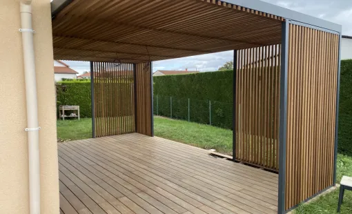 Entreprise, AudouardDavid,à réaliser, cette terrasse en frêne Thermochauffé ajuster à la hauteur de la piscine